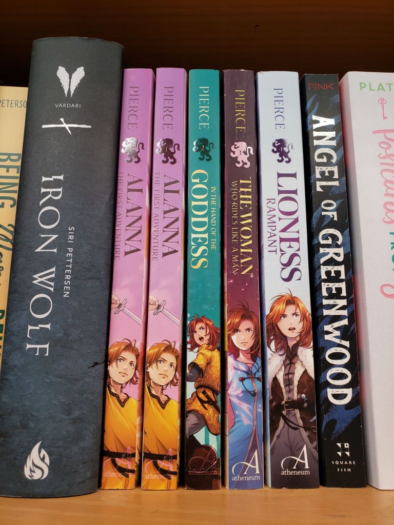 As I waited for my ride, I browsed through the Book House before picking up a few of my preorders dating back to late October. To say the booksellers there rock for hanging onto them for me is an understatement. And look! Tamora Pierce’s Song of the Lioness quartet got new covers! (New to me anyway.)