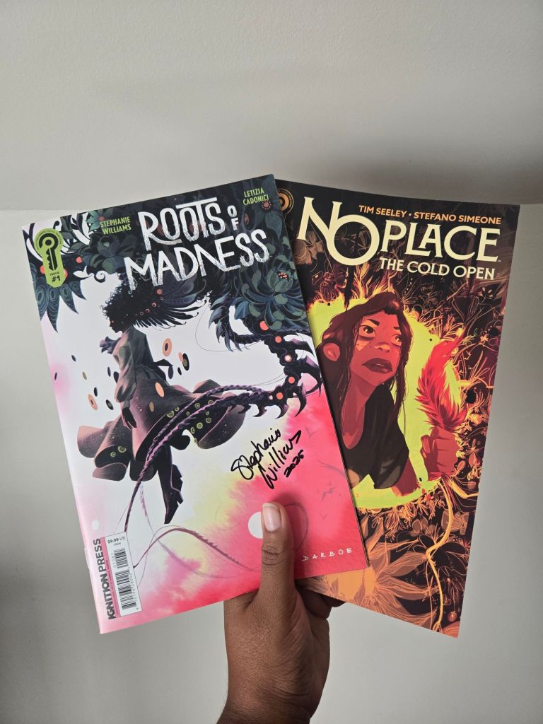 After resting from the general day-to-day activities and our respective bouts of moonsickness, I was able to collect my comic goodies and dive into two of Ignition Press’ opening titles, Roots of Madness and NO Place.